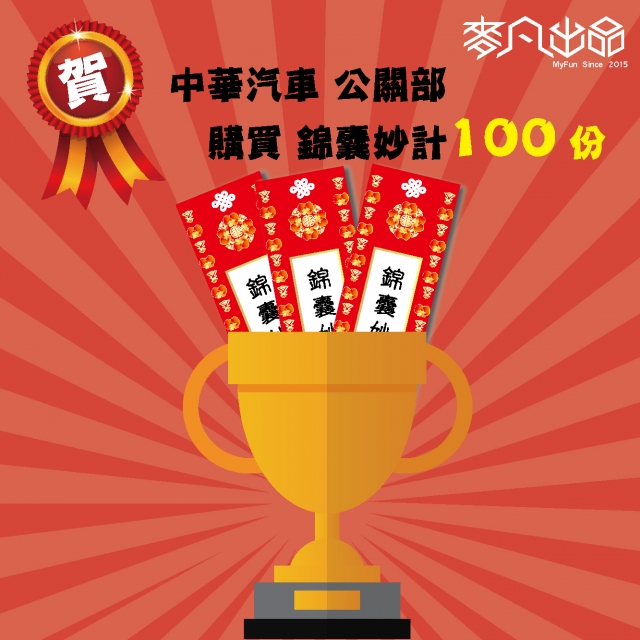 狂賀~~中華汽車 公共關係業務組 訂購錦囊妙計100份。送給參訪的來賓正向能量的精美小禮物。